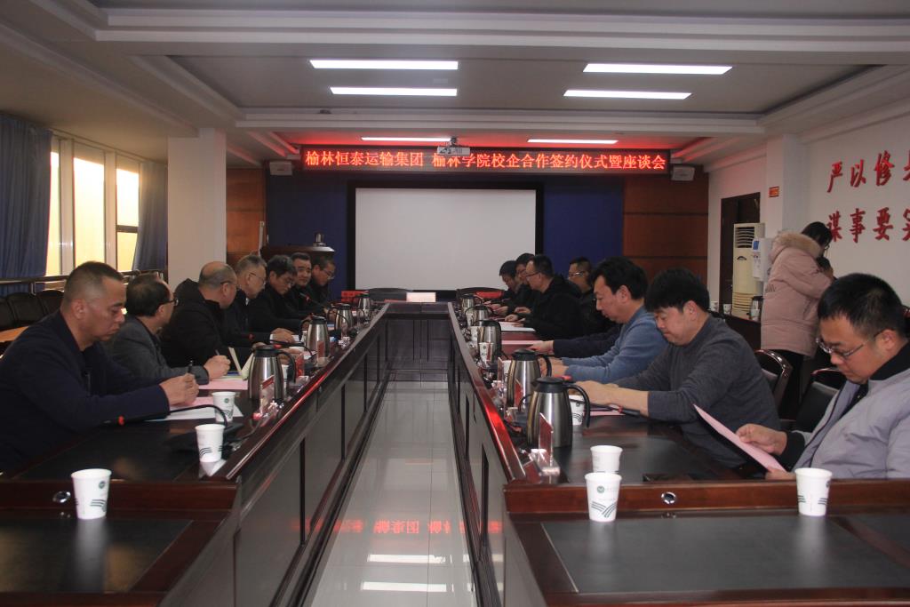 2020年12月23日,榆林學(xué)院、榆林市恒泰汽車(chē)運(yùn)輸集團(tuán)有限公司校企合作簽約儀式暨座談會(huì)議在榆林學(xué)院綜合樓舉行,榆林學(xué)院校長(zhǎng)許云華、黨委副書(shū)記李治山、校科研處、教務(wù)處、人事處、學(xué)生處及藝術(shù)、文學(xué)、管理學(xué)院負(fù)責(zé)人,恒泰運(yùn)輸集團(tuán)董事長(zhǎng)、總經(jīng)理喬宏澤,黨委副書(shū)記、副總經(jīng)理張群,副總經(jīng)理喬建斌及總部有關(guān)部室負(fù)責(zé)人出席座談會(huì)。榆林學(xué)院科研處處長(zhǎng)亢福仁主持了活動(dòng)。