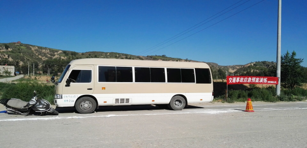 本次演練模擬情景在神木縣城關(guān)鎮(zhèn)石窖院村,一輛摩托車在駛出岔路口時(shí),與城市道路上一輛疾馳而過的客運(yùn)車相撞,導(dǎo)致摩托車司機(jī)受輕傷、客車輕微受損及摩托車嚴(yán)重受損的交通事故的發(fā)生。事故發(fā)生后,集團(tuán)公司職能部門、汽車站和客運(yùn)公司及時(shí)啟動(dòng)車輛交通事故應(yīng)急預(yù)案,出動(dòng)了綜合協(xié)調(diào)、疏散警戒后勤保障和安撫善后4個(gè)救援組,按照演練方案確定的處置程序和措施,對(duì)突發(fā)交通事故中的報(bào)案、傷員搶救、事故現(xiàn)場(chǎng)處理、事故調(diào)查等多個(gè)環(huán)節(jié)進(jìn)行了演練,重點(diǎn)檢驗(yàn)了駕駛員在事故發(fā)生時(shí)的應(yīng)急處置、報(bào)警方式、職能部門及基層單位的接警處置方式、協(xié)調(diào)配合能力、啟動(dòng)應(yīng)急措施的反應(yīng)能力和事故現(xiàn)場(chǎng)正確處置的應(yīng)急能力